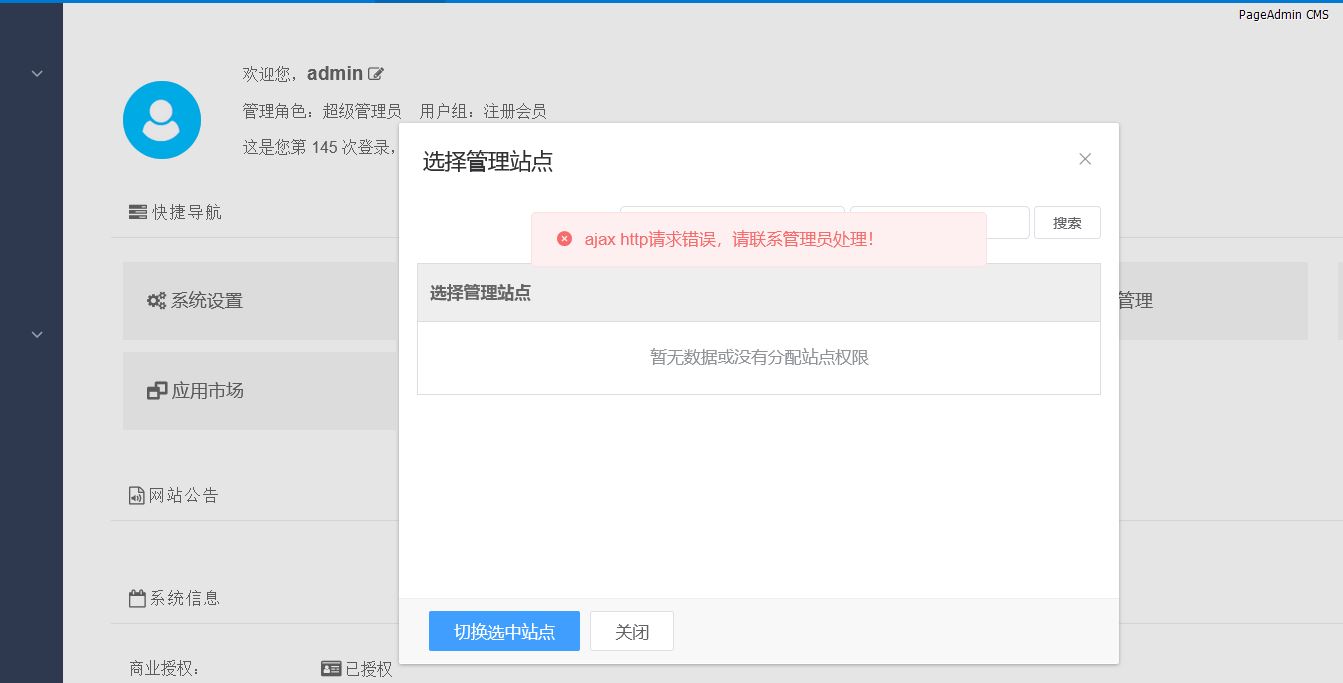 各位站长、想问问PA支持站群功能,但是为什么我切换站点出错呢?