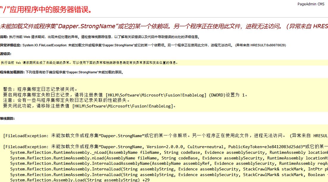 PA上传到中资源的虚拟主机,出现“未能加载文件或程序集"Dapper.StrongName"或它的某一个依赖项。”