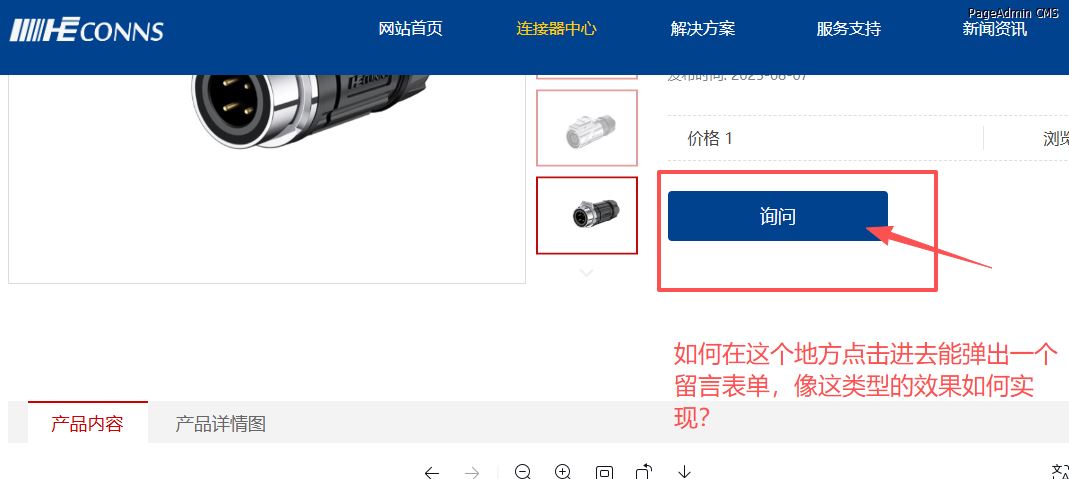 我想在自己产品详情页,咨询加一个展示表单,如何实现?