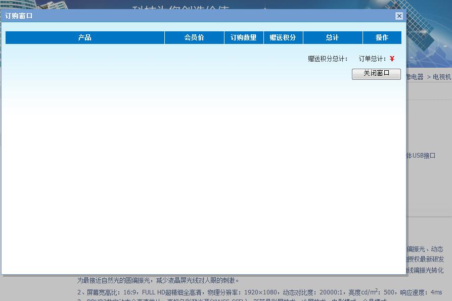 点在线订购就出现一个对话框。没有显示产品的名称,就是一空白