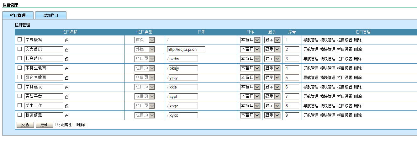 我试过改这两个栏目的序号,达不到想要的效果,学院概况不会显示首页里面的模块内容。