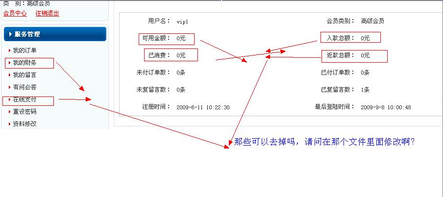 每个类别的会员都对应一个会员中心设置,进去设置关闭这些功能.
