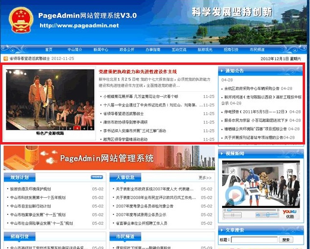 模块结构这一块,你可以按照我写的写,红线框住的这两个是调用的幻灯片和新闻信息,你可以换成你自己要展示的图片和信息,