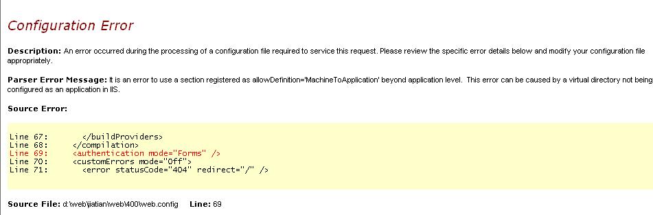 我在网站的 目录下 又建了一个文件夹 叫400 然后在这里面又放了一个网站 结果出现错误 怎么办