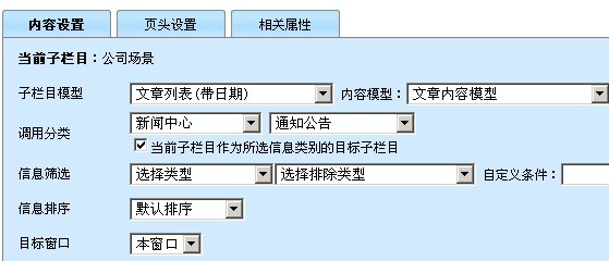 子栏目调用时候有一个:当前子栏目作为所选信息类别的目标子栏 需要选中。