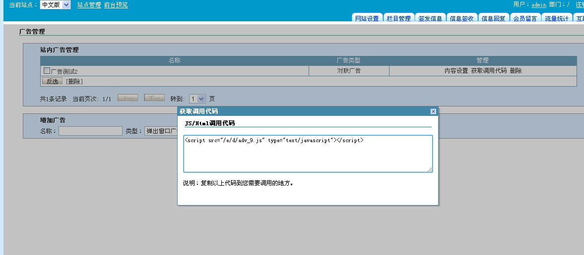 站内广告js代码不能自动生成
