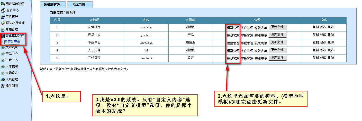 网站本身是有图片展示呀,文章列表呀这些模型的呀。问什么看不到呢?想新建一个,但是由于一个模型没看到所以也不知道怎么建好。最好点击自定义表单时能显示已经有的表单。