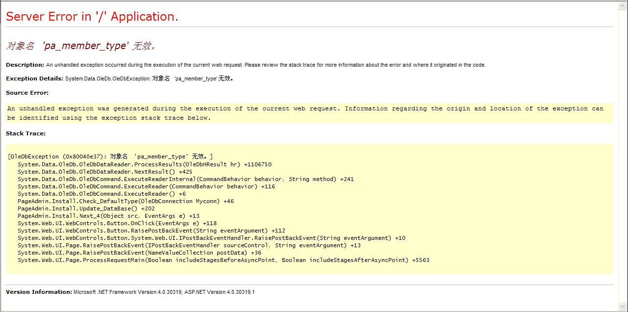 出现这步是因为你数据库没有导入,导致找不到pa_member_type这个表所以出错了