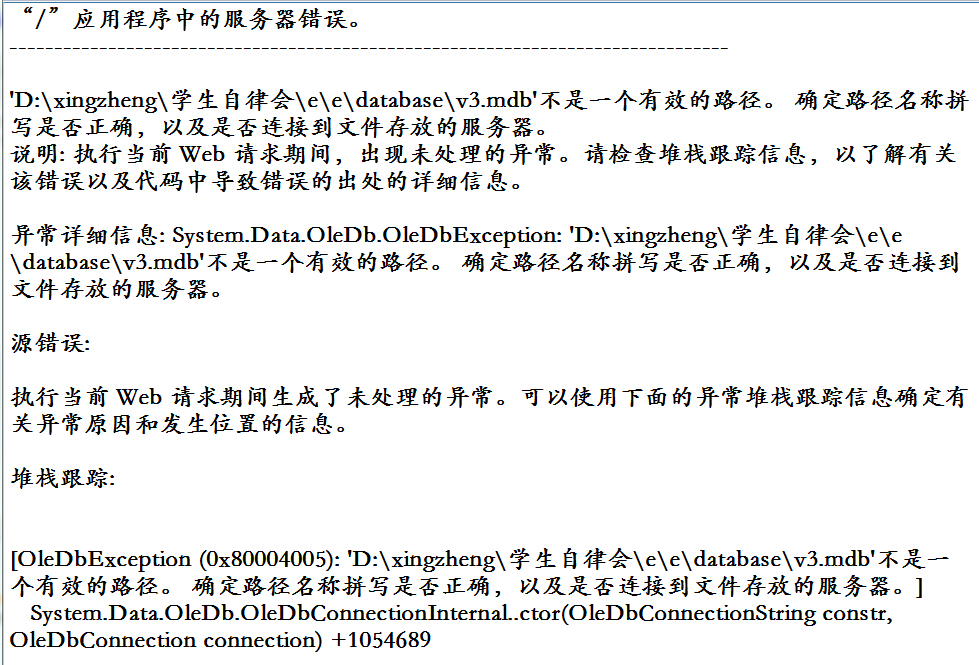 老师帮我把网站挂到服务器,当我在安装后台的时候,输入完管理员密码,就弹出一个页面,错误信息如下文所示,我猜路径可能没有用相对路径,所以我想知道要到哪个文件改,web.config里面好像没有信息出现的路径,请大神告诉我到哪里修改。