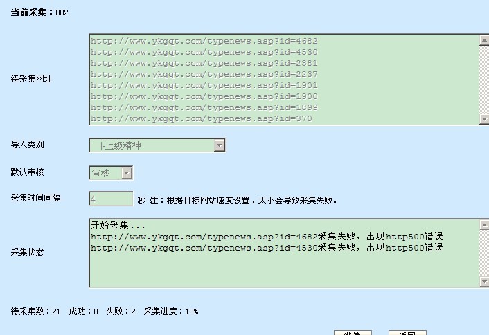 我把目标网站放在本机,还是不行啊,还是出现500错误