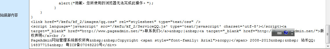 找到index.aspx,打开,把<link rel="stylesheet" type="text/css" href="/kefu/kf_2/images/qq.css" /><script language='javascript' src='/kefu/kf_2/ServiceQQ.js' type='text/javascript' charset='utf-8'></script>