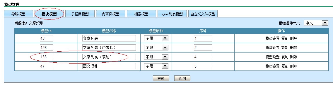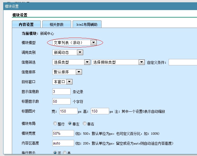 3、在首页-模块设置里选择了”文章列表(滚动):