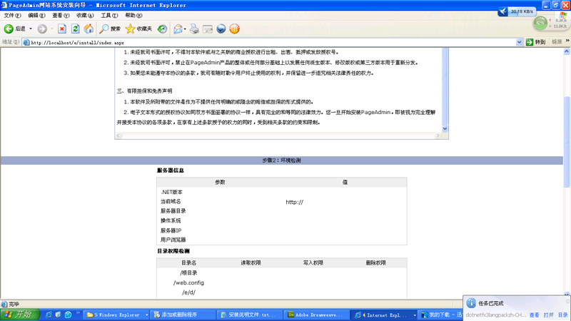版主,试过多次重新安装都不行。是不是下载的iis5.1的问题?版主推荐个下载地址吧。顺便问一下,是不是安装完iis就可以测试localhost了?如果安装正确,会显示什么?