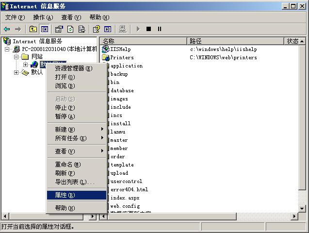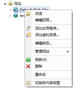 为什么我的win7 iis 默认网站右键后没有教程(图1)中所示的属性...