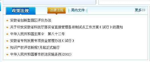 “政策法规” 是模块栏标题。后面两个“法律法规”和“局内文件”是两个选项卡栏标题。