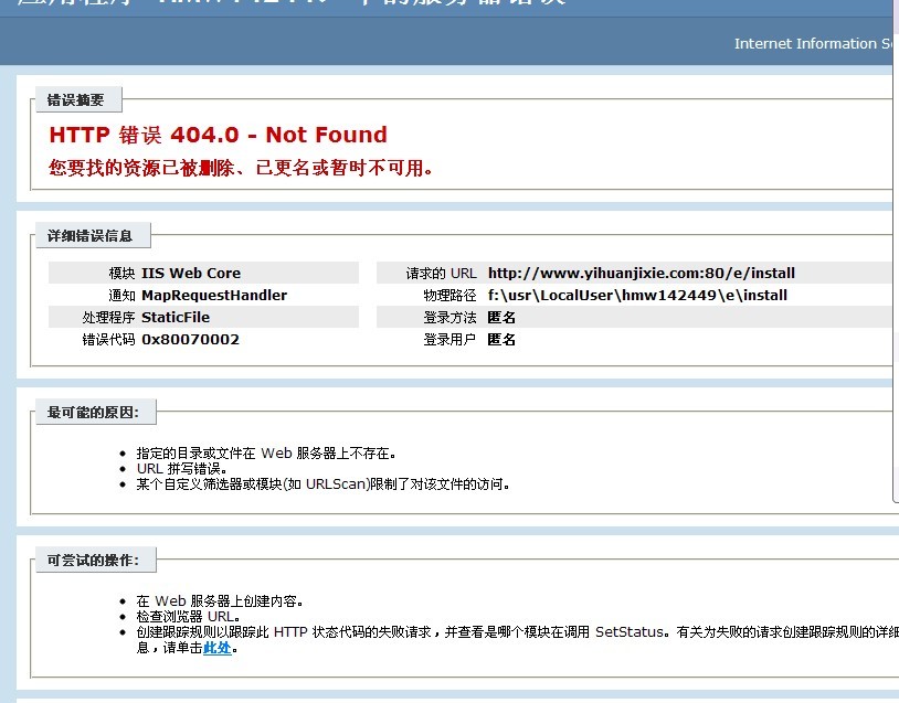 你错误提示页面的物流路径和你实际防止路径都不一样