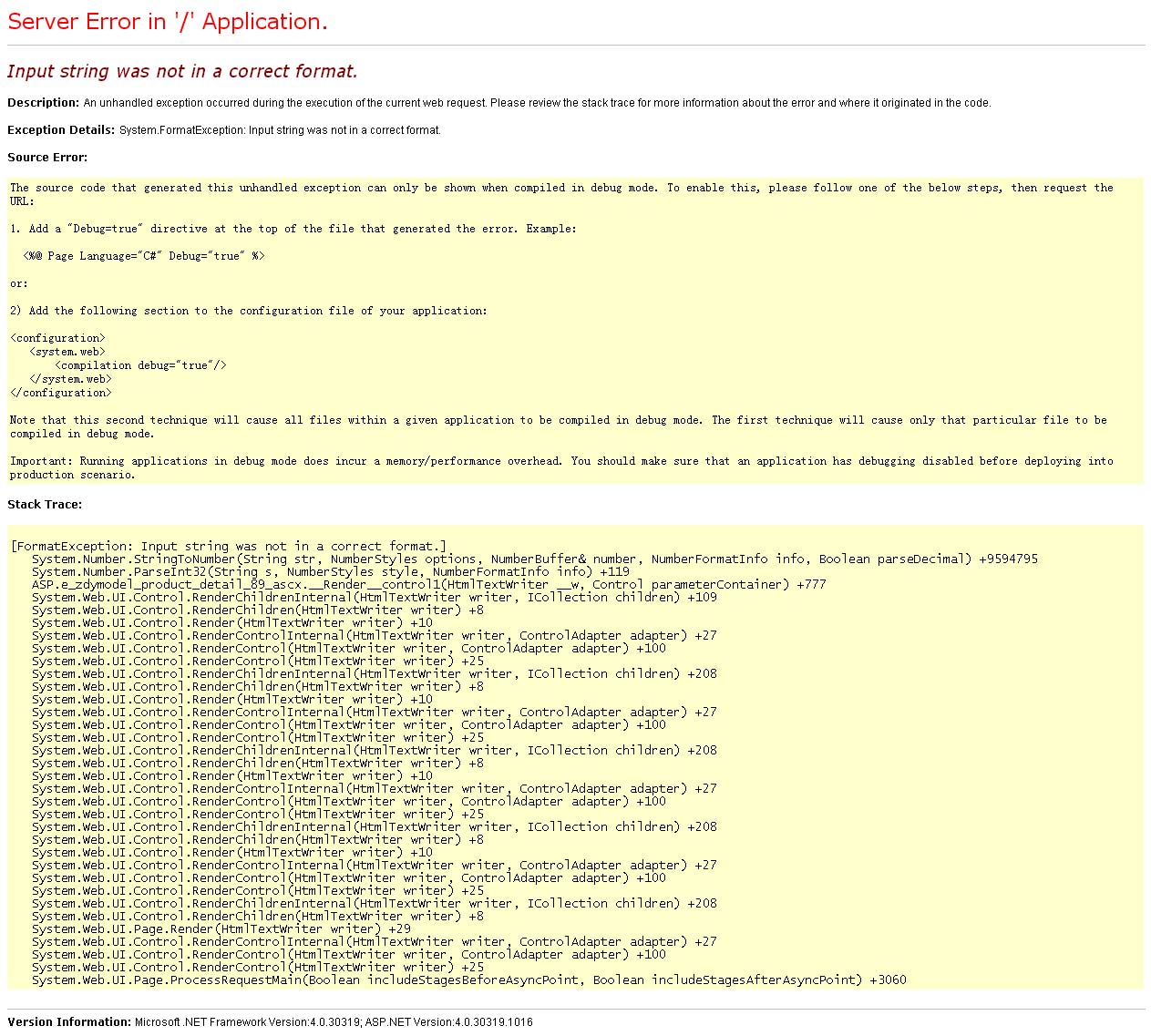 网站出现这个问题怎样解决?Input string was not in a correct format.