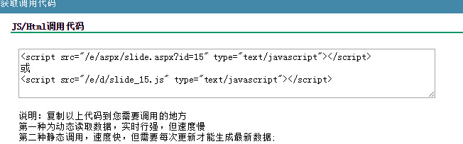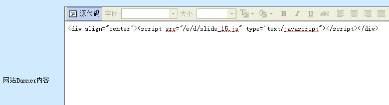 我检查了下网站设置中banner内容,原先调用的slide_14.js已经不存在,我现在的调用代码是15,于是我就把新代码复制过去,如下两个图所示。提交后,清除浏览器缓存,重新打开网站,很悲催,还是不显示。。。无语了,恳请各位大侠帮帮忙,万分感激!
