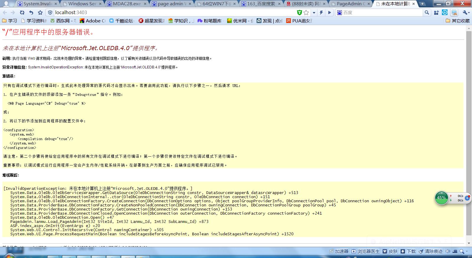 64位WIN7下安装配置PageAdmin出现问题