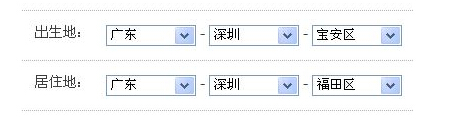 如何在表单字段中实现“省市区三级联动的下拉选择”框,