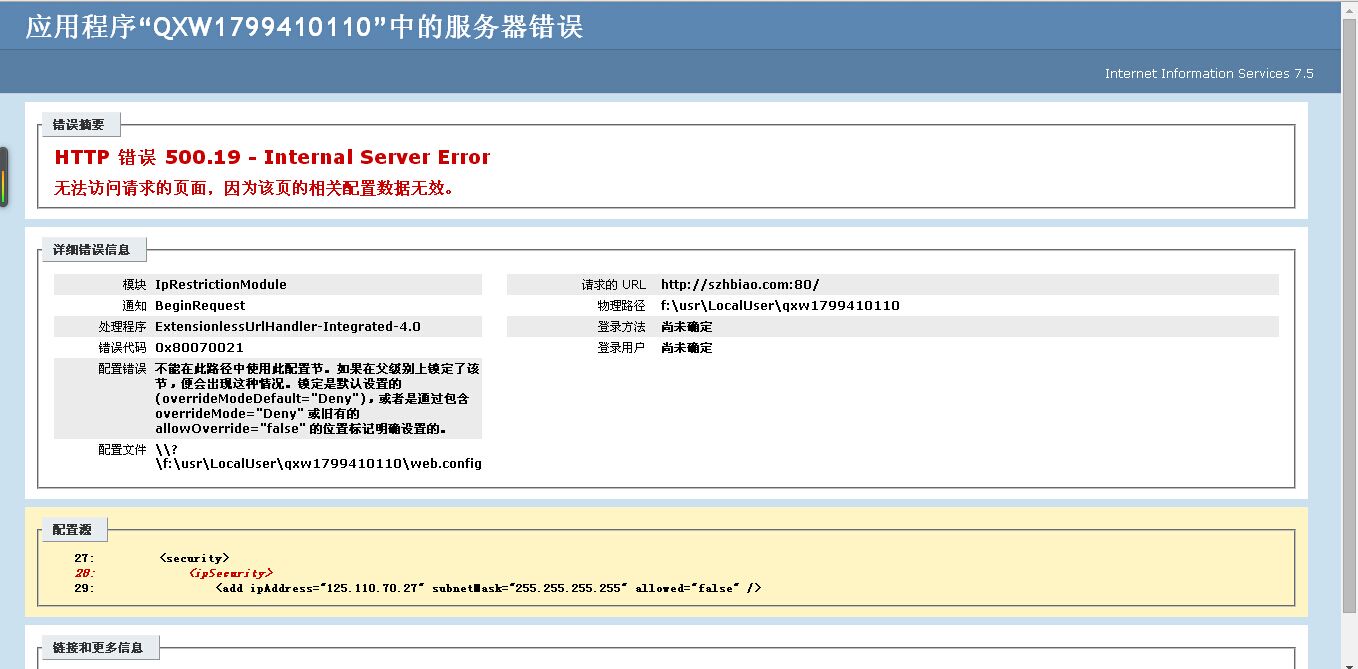 [quote]web.config里面不要乱加内容,你看一下原始的web.config文件是什么样,把你增加的删除掉