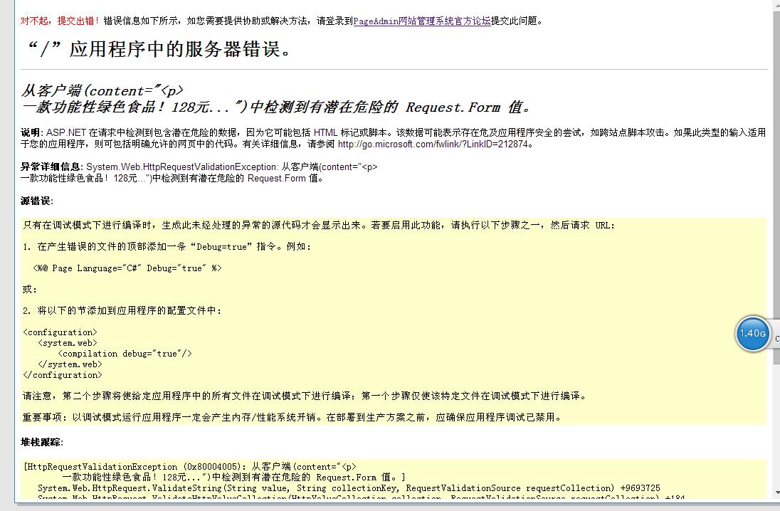 在发布产品中心发布信息时,在产品介绍中文字提交出现问题