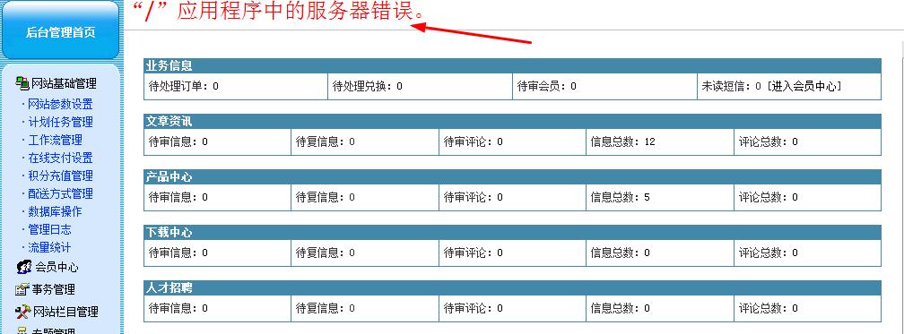求高手 后台最上面的一列管理模块显示“/”应用程序中的服务器错误