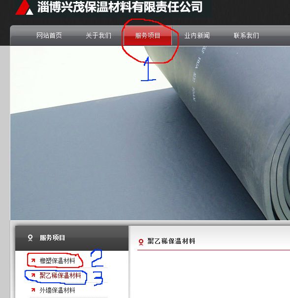 点击导航的“1服务项目”--按说应该出现“2橡塑保温材料 ”,出现的却是“3聚乙稀保温材料 ”,我想知道问题出在哪里?该怎么处理
