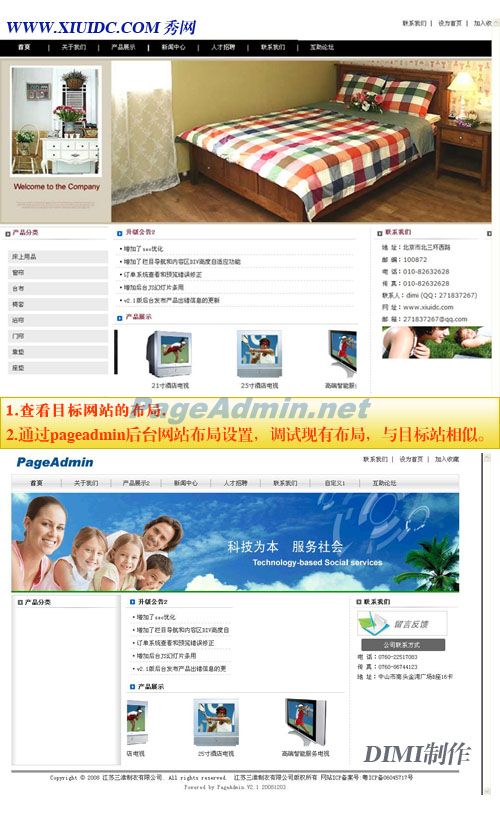 然后和我们安装好的 pageadmin 模板经行对比,分析,目标网站的布局。