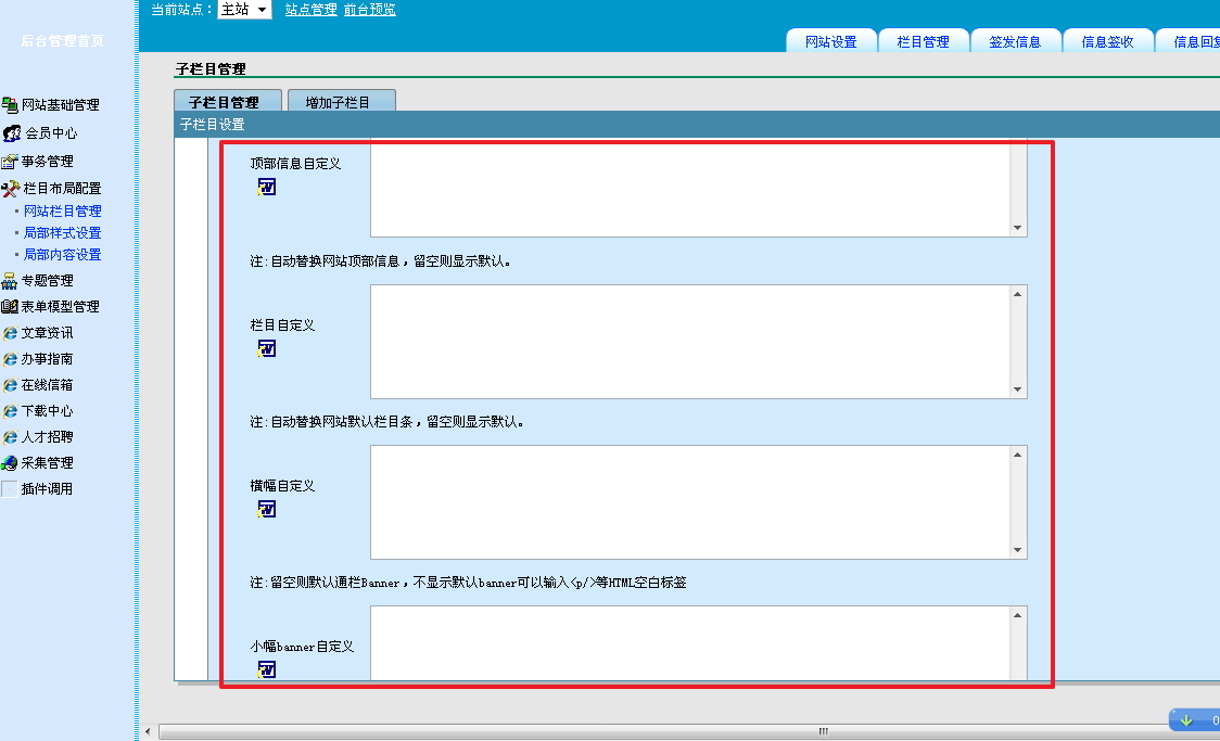 是不是要在子栏目的参数设置中调整啊?本人菜鸟一枚,请大神救命啊!