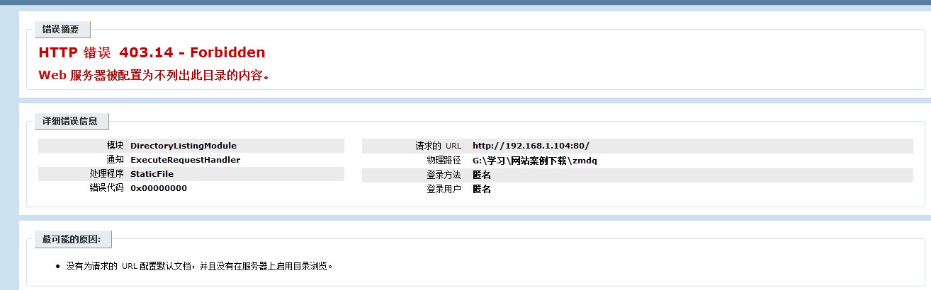 网站在win7的 iis 上面配置好后出现403错误