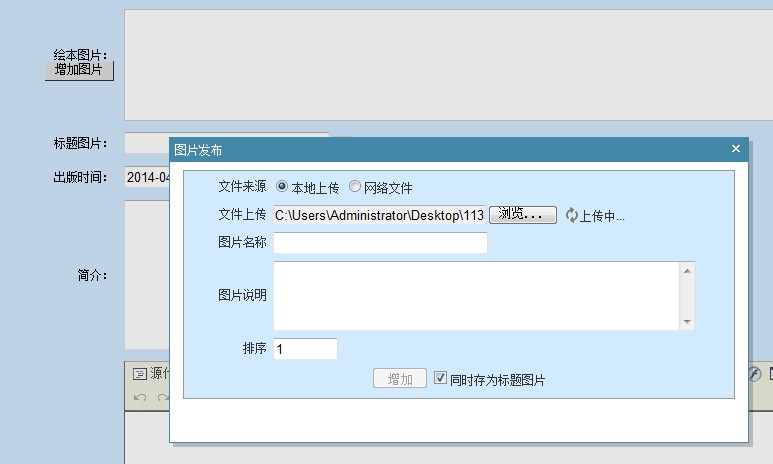 产品中心----发布信息里,上传本地图片一直处于上传中(如图)