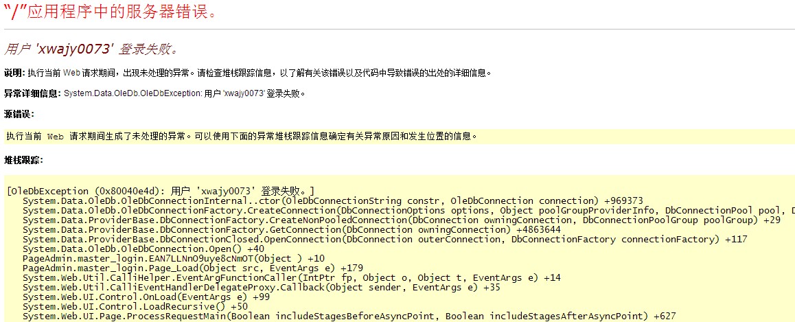 System.Data.OleDb.OleDbException: 用户 'xwaj****3' ...