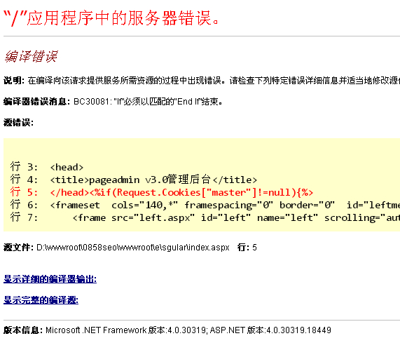 行 5: </head><%if(Request.Cookies["master"]!=null){%>[