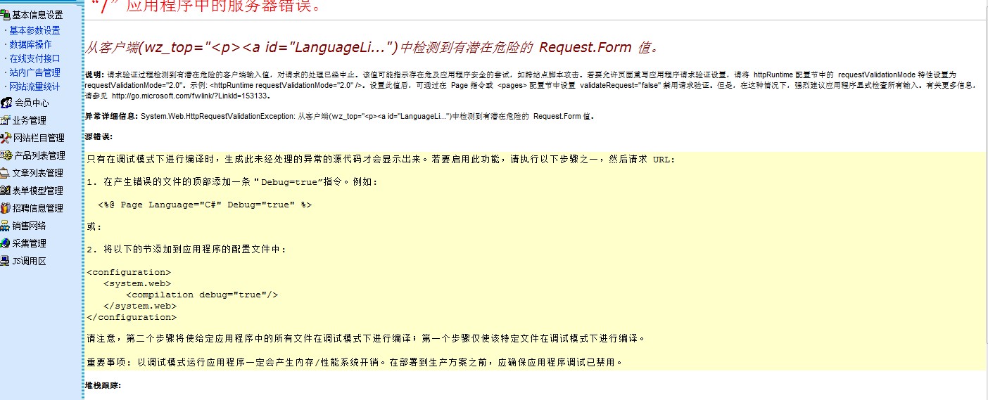 为什么我登陆后台后修改基本参数设置后一点提交就出现这个错误?