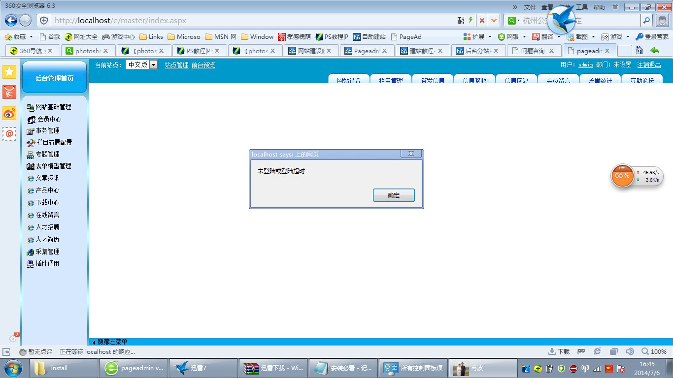 为什么进入管理后台,输入了管理账户和密码,进入后台页面,等一会儿有提示登录,反复进行?请大侠赐教,谢谢!