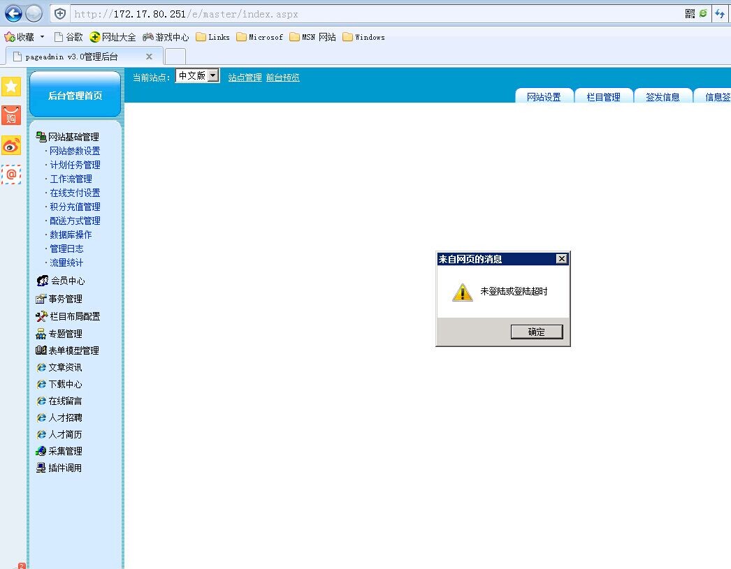 pageadmin cms 3.0 注册正版后 后台登入后操作出现未登陆或登陆...