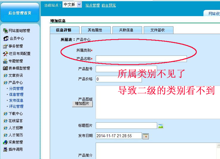 发现这个模板的产品中心分类选择有BUG,使用后发现,当选择产品中心类别的时候,出现什么也看不到的情况,导致二级分类也看不到