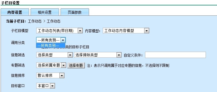 子栏目里的调用分类是来自哪儿的?