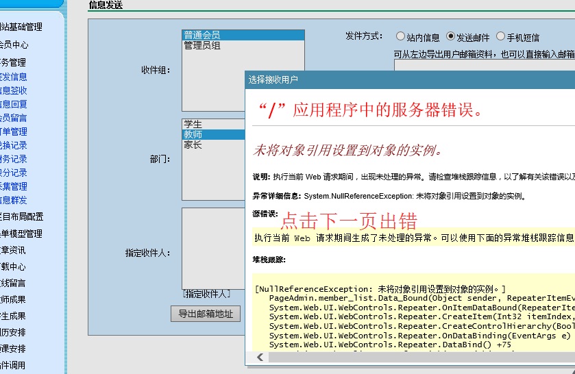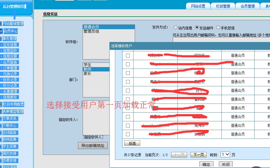 群发信息指定联系人翻页时出现错误,群发短信失败
