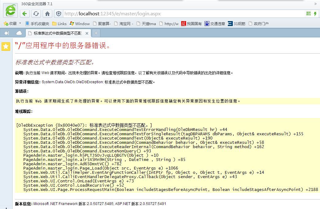 进入后台,输入用户名和密码后出现下面情况