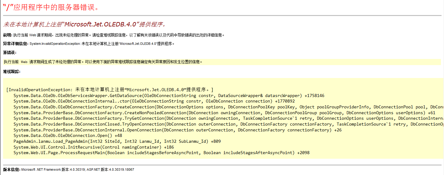 将下载的V3发布到IIS上,出现未在本地计算机上注册“Microsoft.Jet.OLEDB.4.0”提供程序 错误