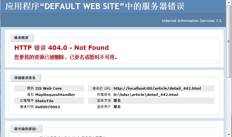 最可能的原因:•指定的目录或文件在 Web 服务器上不存在。