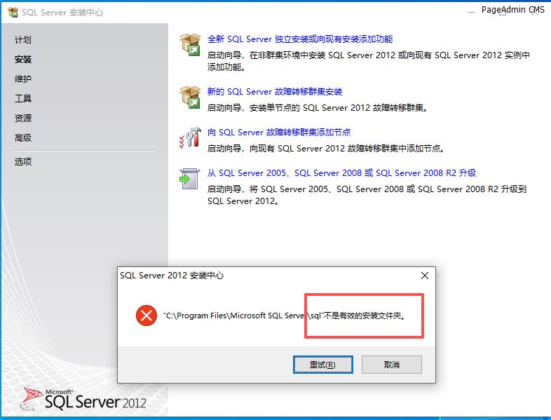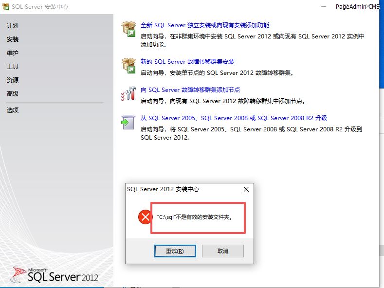 安装sql2012时提示不是有效的安装文件夹。请问如何解决?