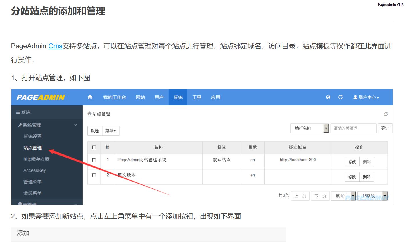 上面图片是我的后台,下面是官网教程后台,我这个没有新加站点,请问xiyou老大,要加一个英文站点并设置为默认站点怎么操作。